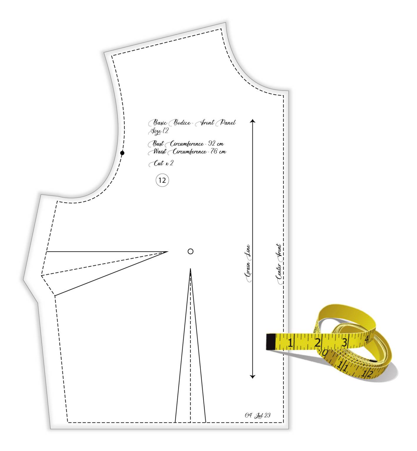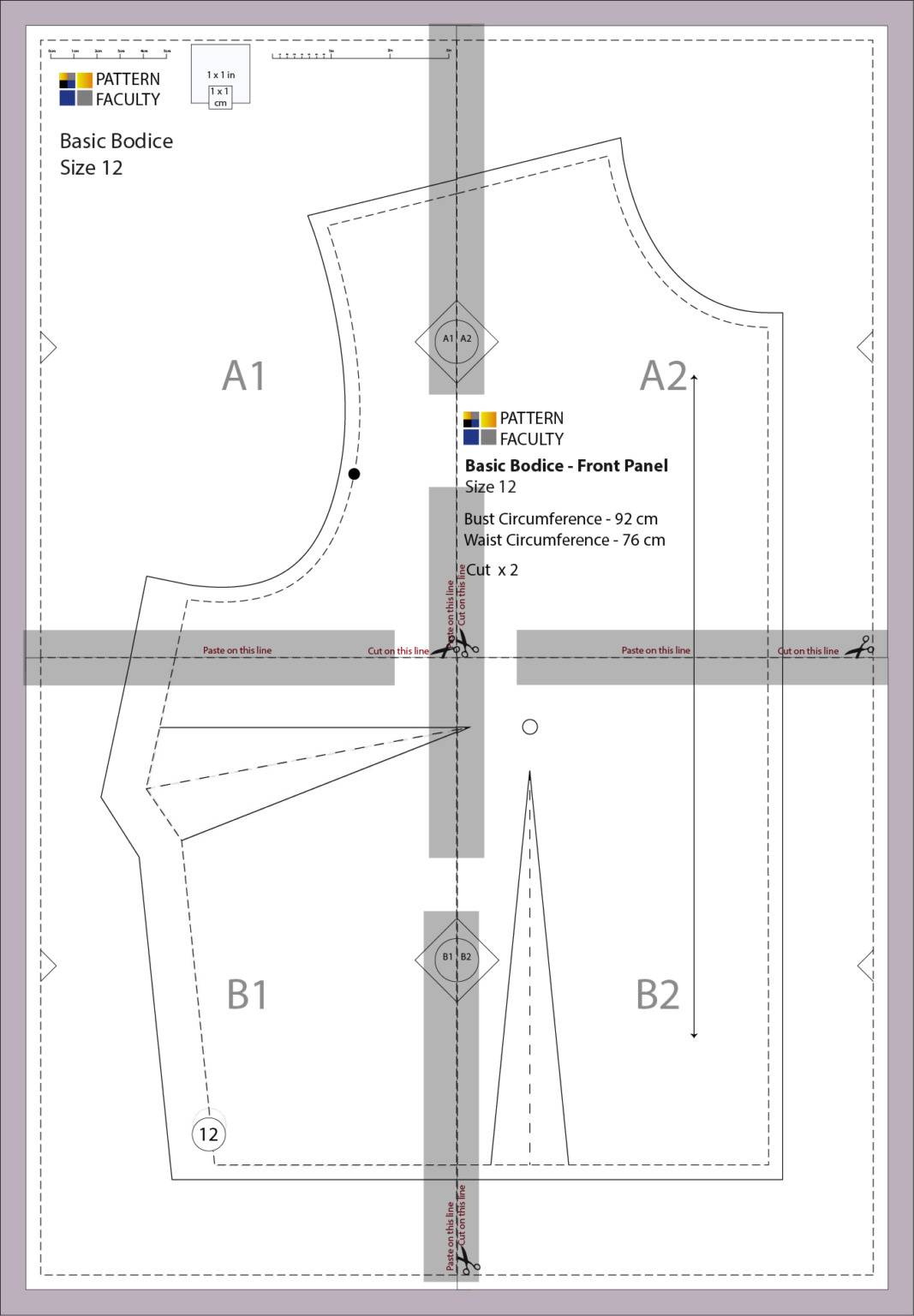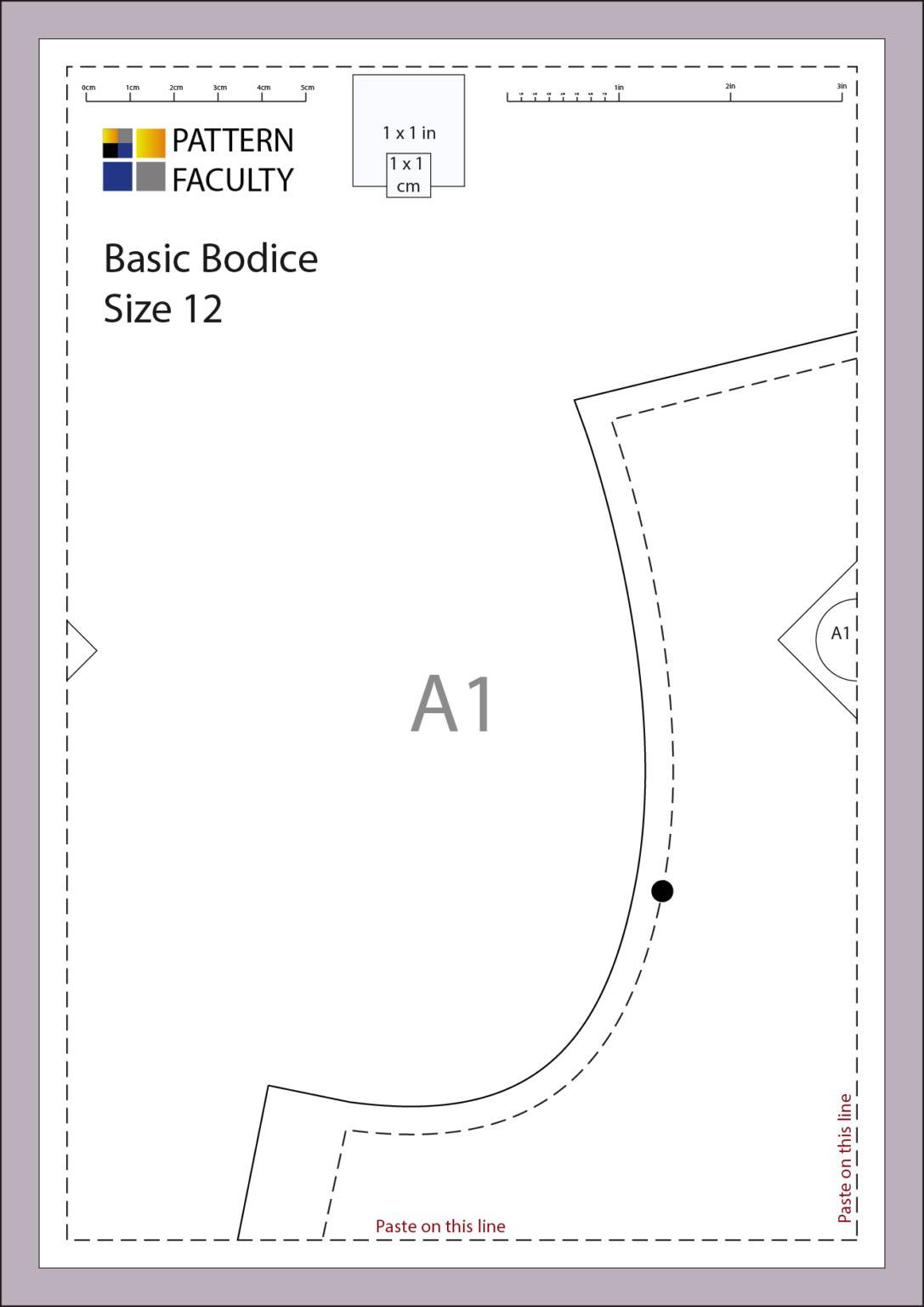 Printed size 12 basic bodice front panel.