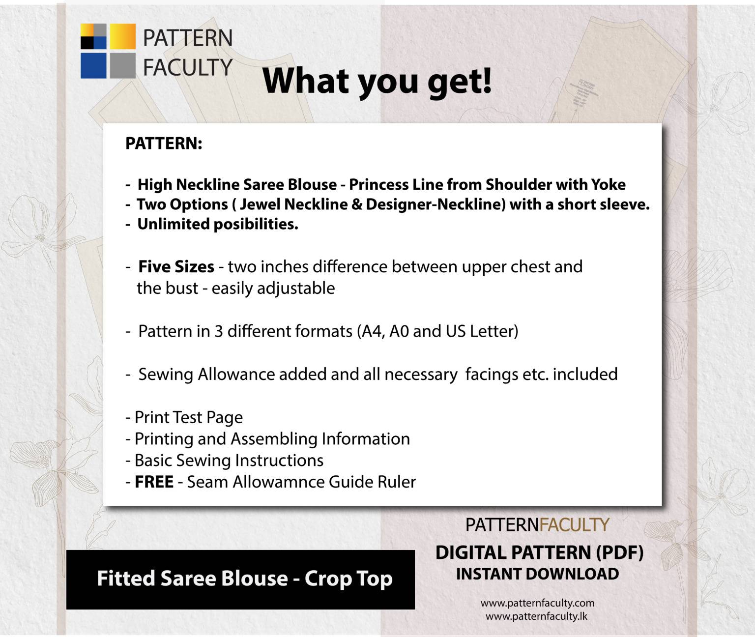 Instant Downloads: Once your payment is confirmed, you will have access to download the pattern files. Kindly ensure that you check both your Pattern Faculty-LK account and the email address associated with it for the download links.