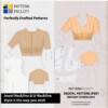 IMPORTANT MEASUREMENTS: This pattern set is drafted with a two-inch difference between the upper bust and bust circumference. Before making a purchase, we kindly request you to ensure accurate measurements. Please measure your chest circumference, full bust circumference, and the waist circumference. Once you have taken these measurements, compare them with the measurement chart provided below. If your body measurements do not align with any of these sizes mentioned below, kindly consider checking out alternative size group options available here. We have sizes from Bust circumference 31 to 55 available in this range.