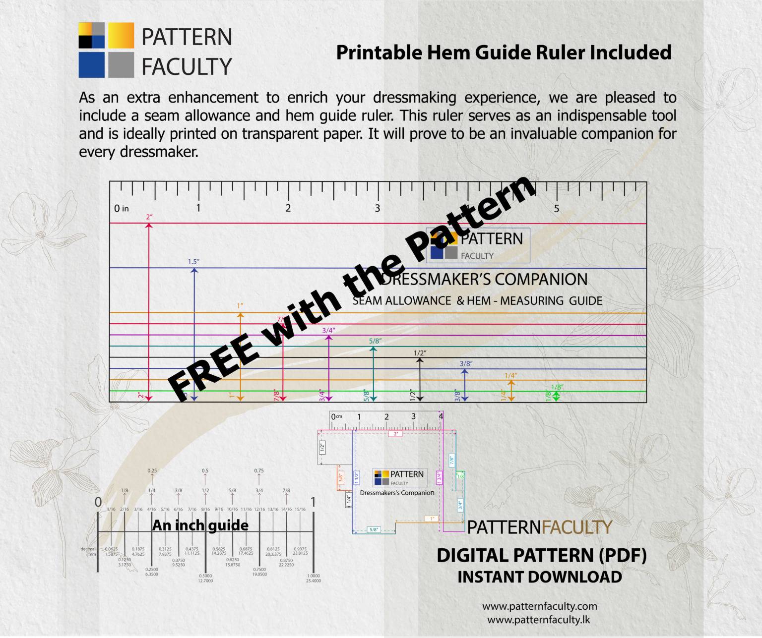 - Sewing Allowance and Hem guide ruler – PDF (free)