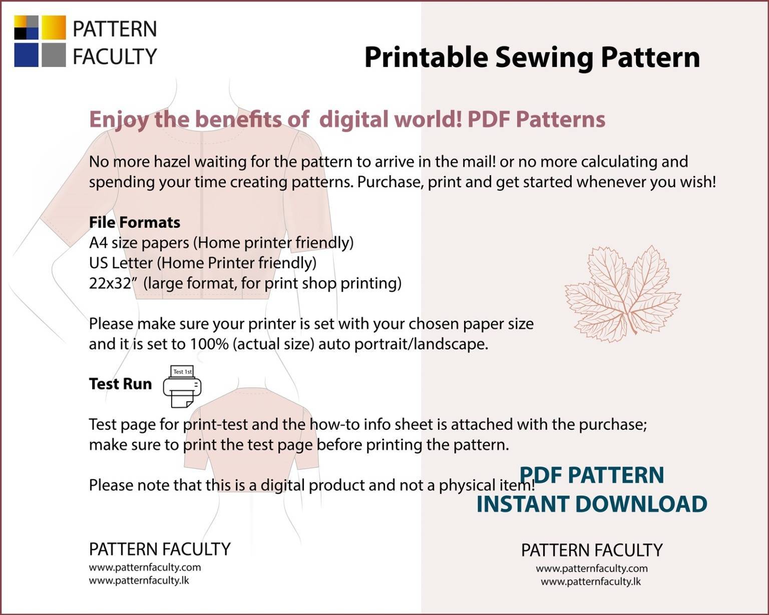 Instant Downloads: Once your payment is confirmed, you will have access to download the pattern files. Kindly ensure that you check both your Pattern Faculty-LK account and the email address associated with it for the download links.