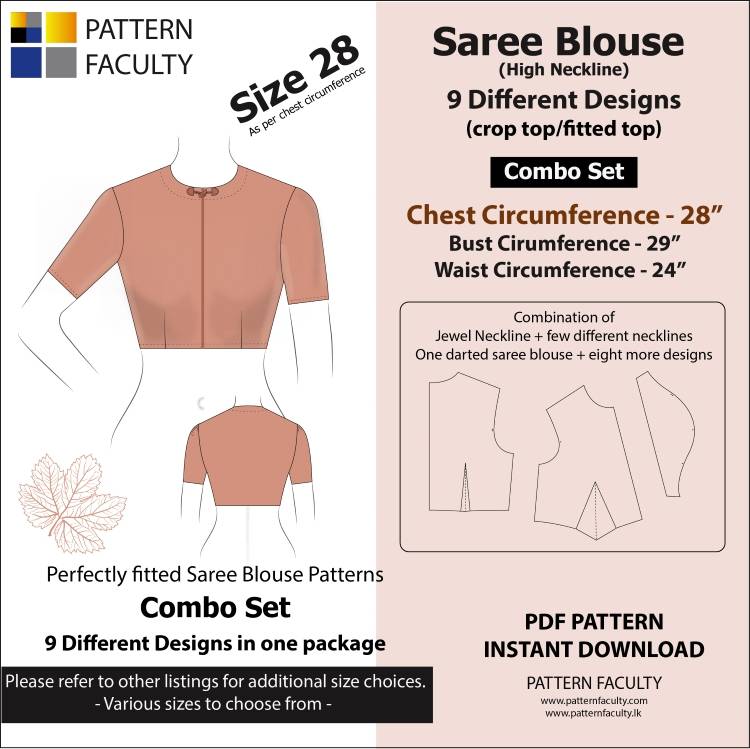 Saree Blouses High Neckline 9 Different styles (cuts) Size 28.