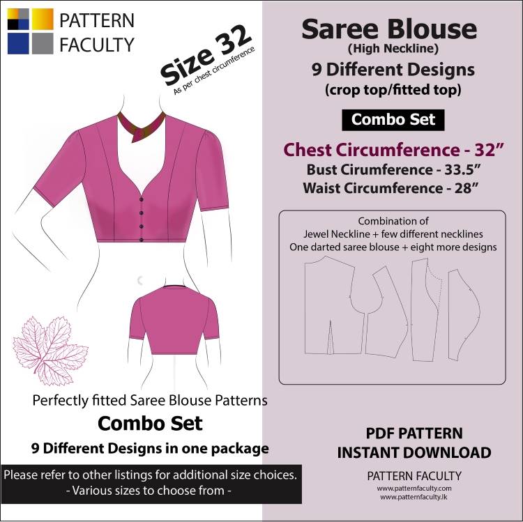 Saree Blouses High Neckline 9 Different styles (cuts) Size 32.