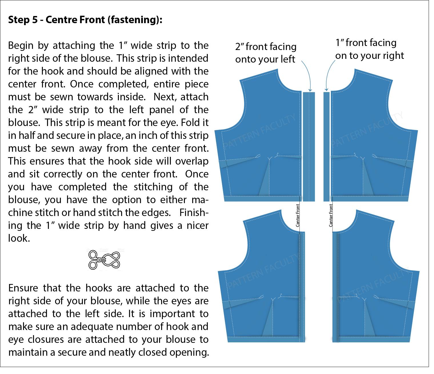 - Securely sew the hooks and eyes in place.