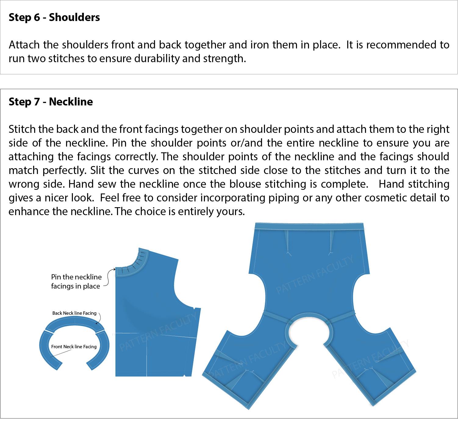 Disclaimer: Please note that the above instructions, illustrations, links, and information provided here are intended to assist you in sewing your Saree blouse using the pattern you purchased from Pattern Faculty-LK. However, it is important to understand that this is not a comprehensive “sewing master class,” and the instructions provided should be regarded as a guideline only.